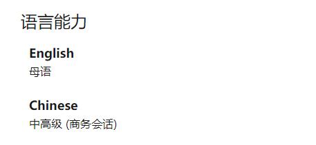 Susan Li的领英资料显示,其中文具备商务会话能力