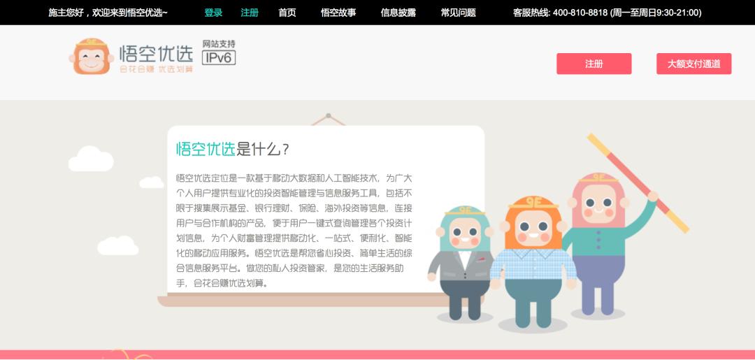 2014年9月,悟空理财正式上线,通过承诺7.9%甚至更高的年化收益率,首日交易额就突破100万元,三天用户数过万。