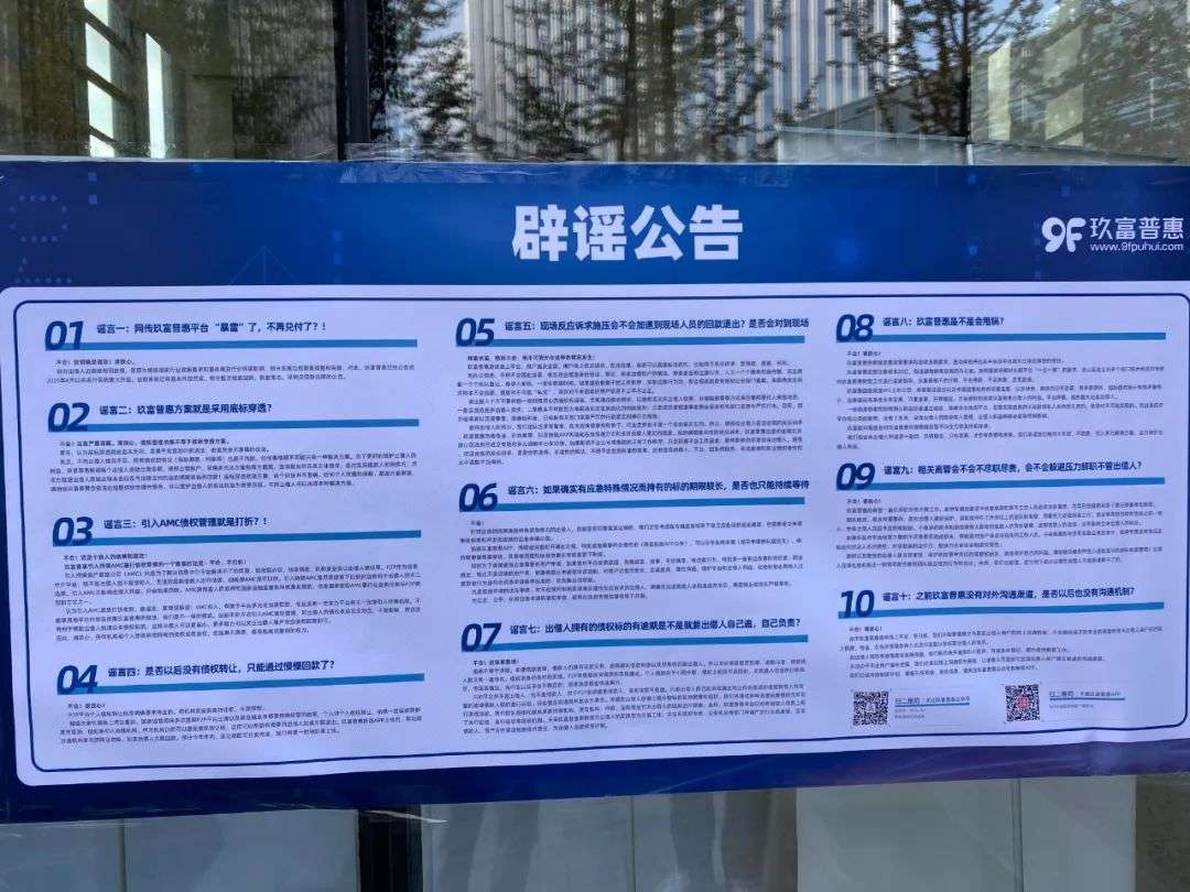 在此期间,玖富多次作出回应——预计10月将发布新版玖富普惠APP;玖富普惠发布辟谣公告,列出十条辟谣,并称引入AMC(持牌资产管理公司),加快出借人回款。对于去现场维权的出借人,玖富当时给出的回应为,“回家等方案”“等方案”等回复。