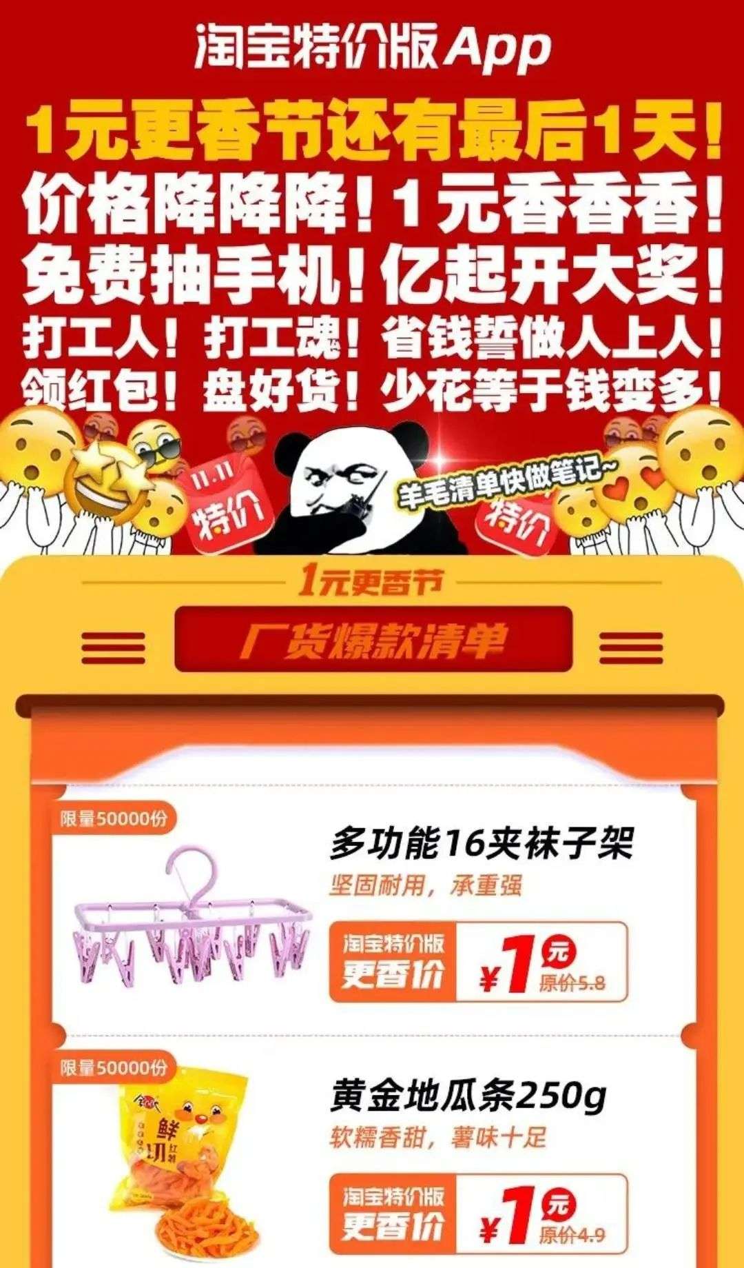 来源/淘特 燃次元截图图/淘特2020年1元更香节活动海报节选