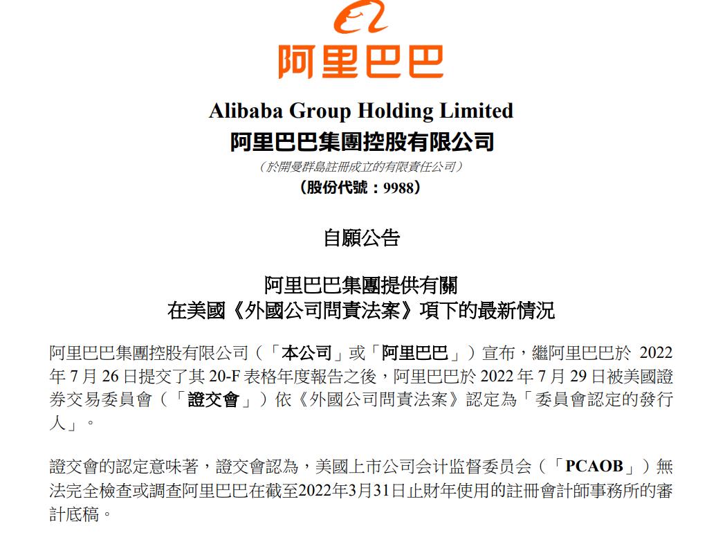 SEC 更新预摘牌名单,阿里巴巴等 159 家中概股先后 “ 上榜 ”