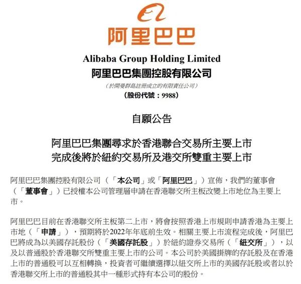 不过,阿里早在 4 天前就想好了对策:将新增香港为双重主要上市地。