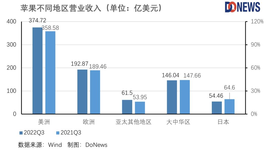 美洲营收374.72亿,同比增长4.5%;欧洲营收192.87亿,同比增长1.8%;亚太其他地区营收61.50亿,同比增长14%;大中华区营收146.04亿,同比下降1.1%;日本营收为54.46亿,同比下滑15.7%。