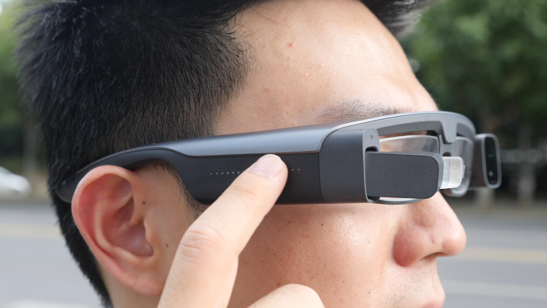 值得注意的是,滑动右边镜腿的特定区域,即可实现变焦。因此,日常佩戴出街时,甚至可以将这副眼镜当作望远镜使用。