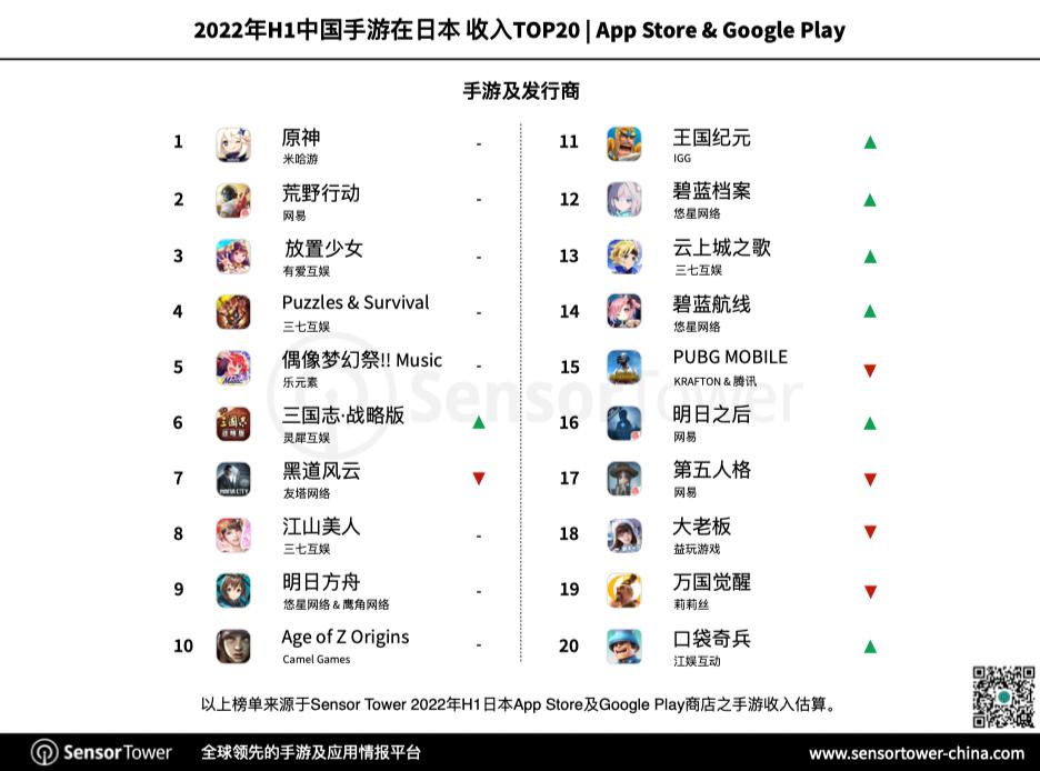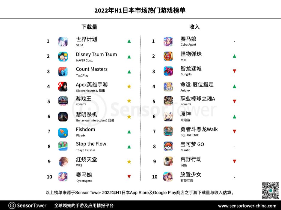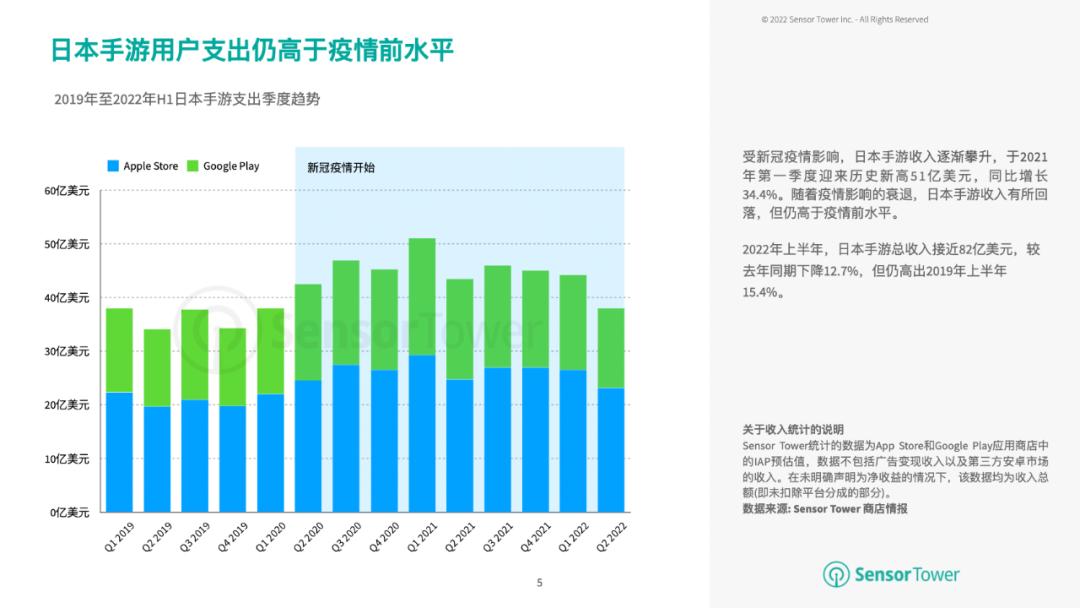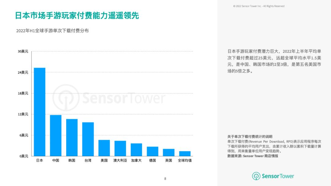 2022年上半年日本移动游戏市场洞察:玩家支出突破82亿美元,平均每下载付费是美国市场的5倍