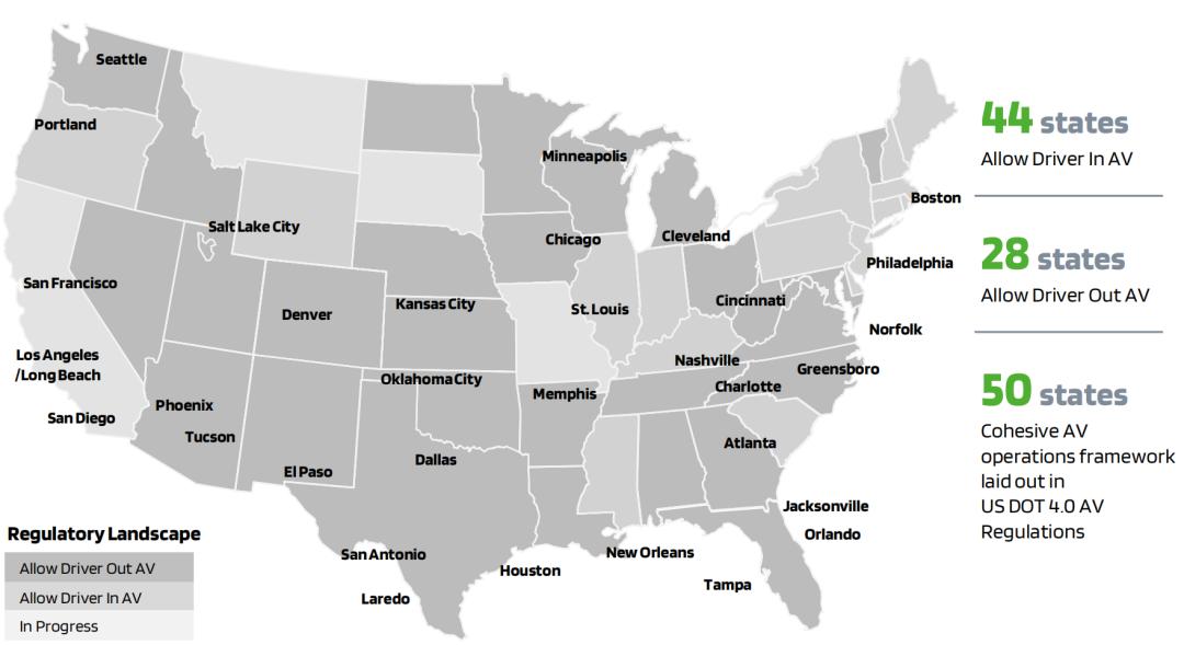 从监管角度来看,侯晓迪称,今年第二季度,公司将继续致力于建立一个以国家为基础的立法和监管框架,这将提供一个安全高效的商业自动驾驶车辆货物运输生态系统。而随着堪萨斯州和西弗吉尼亚州颁布立法,授予L4货运授权。目前,美国已经有44个州允许驾驶员参与运营,28个州允许驾驶员外出部署。