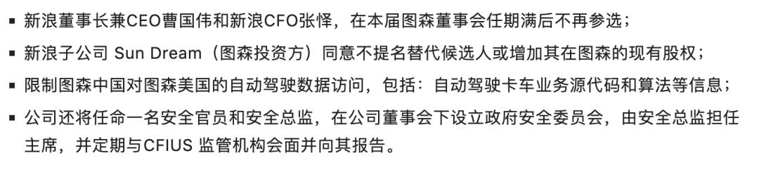今年以来,图森未来人事变动频繁。2月,图森未来与美国政府达成了一系列协议,以解决围绕其自动驾驶卡车业务以及该公司与中国关系的安全问题。其中要求: