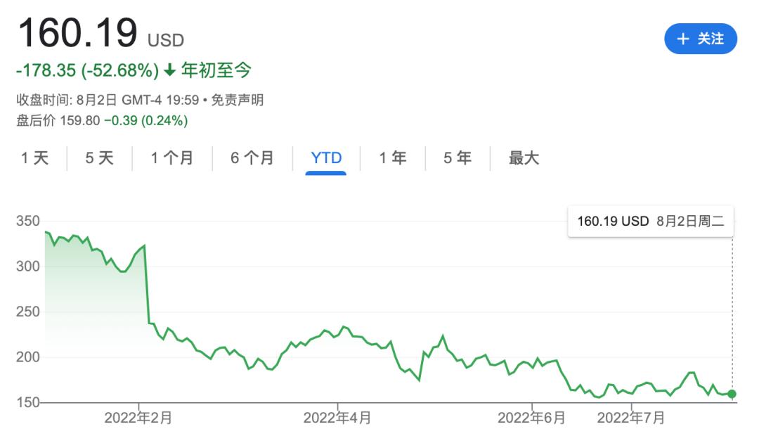 这波下滑趋势一直持续至今,自今年以来Meta股价近乎腰斩。