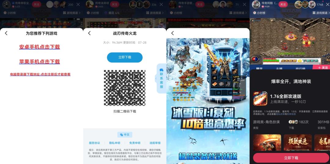 当下,传奇游戏通过抖音、快手直播间,组建出新的“造血机器”,直播带玩、直播间一键下载,形成了更加具象、有效的用户转化方式。