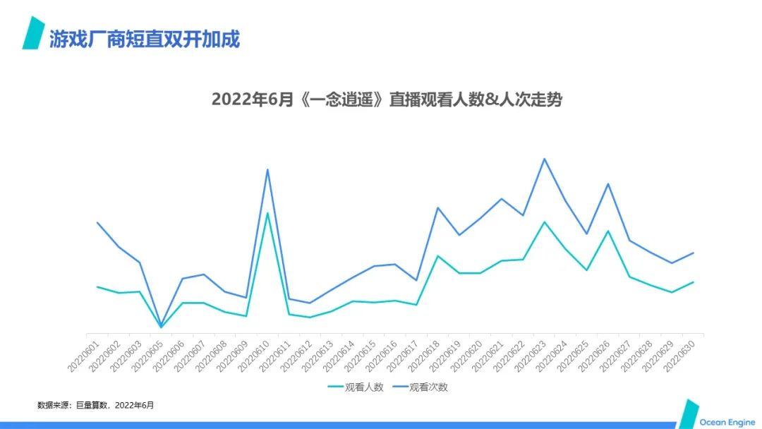 换句话说,即直播与短视频双开,可达成1+1>2的效果。例如DouGame报告提到,《一念逍遥》直播在6月下旬显著带动了短视频自然流量,使得相关的短视频内容自然播放量显著提升。