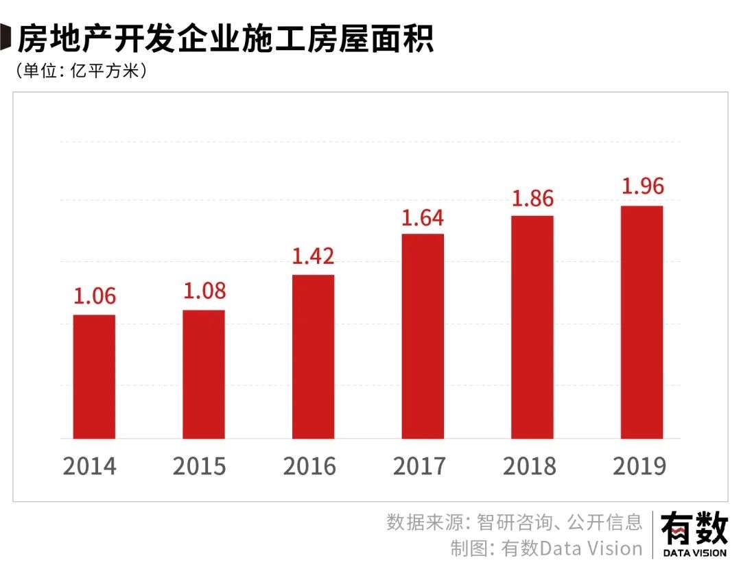 在河南改善的策略中,房地产也确实是一个核心。毕竟土地经济除了自身的贡献外,还能带动包括建材、钢铁、装饰等多个产业的发展。2014年到2019年,郑州房地产开发企业施工面积连年上涨就是最好的佐证。