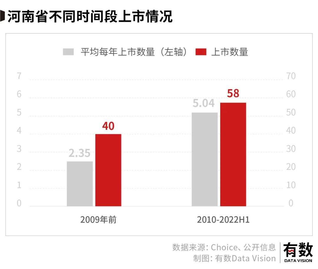 河南公司上市速度增长的情况肉眼可见。2010年以来,上市的速度是之前的两倍。