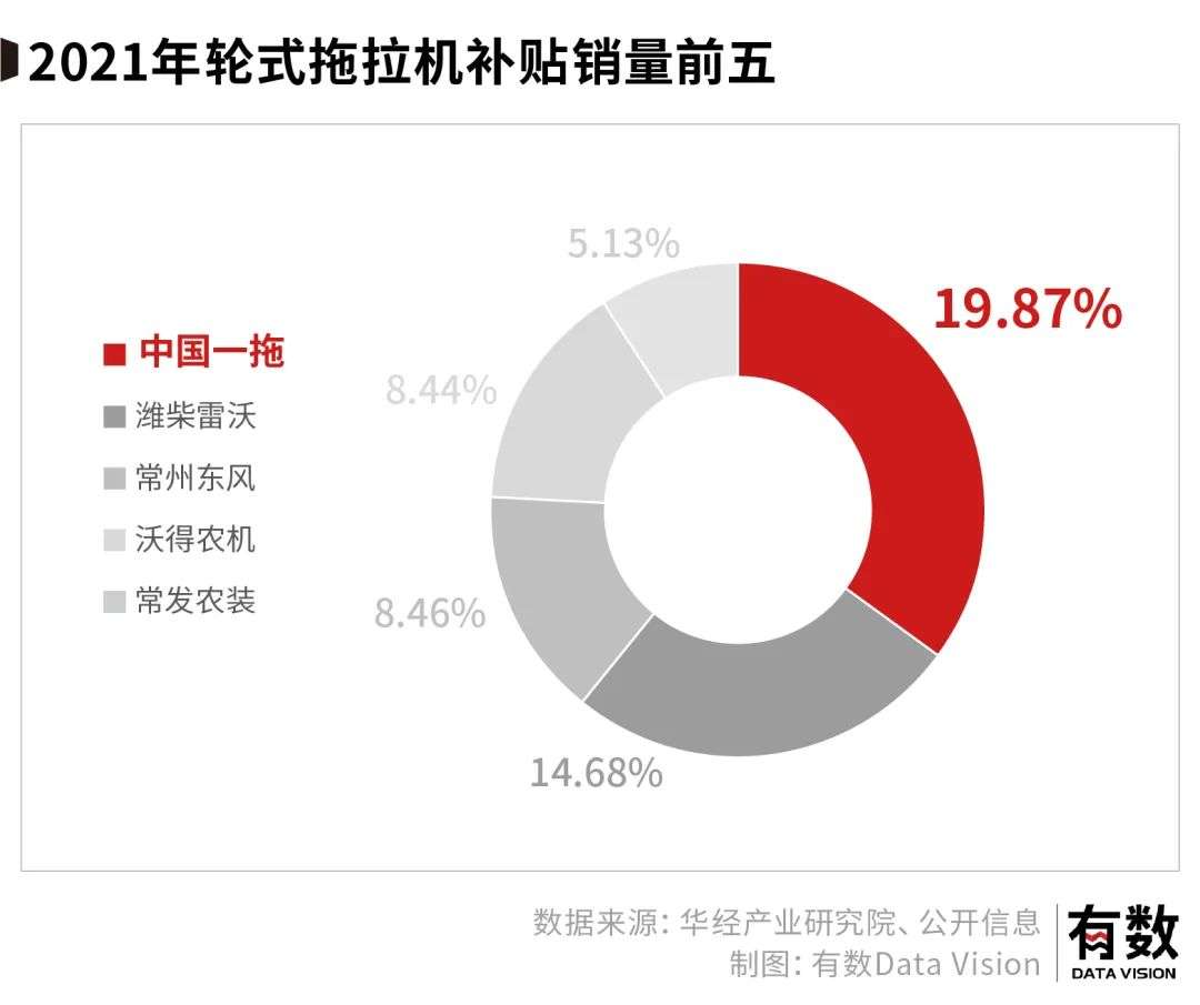 原先的第一拖拉机厂,现在已经是上市公司“一拖股份”,据不完全统计,改开前东方红拖拉机完成了全国60%以上机耕地的作业。公司在农用拖拉机的市占率排名中位居首位。