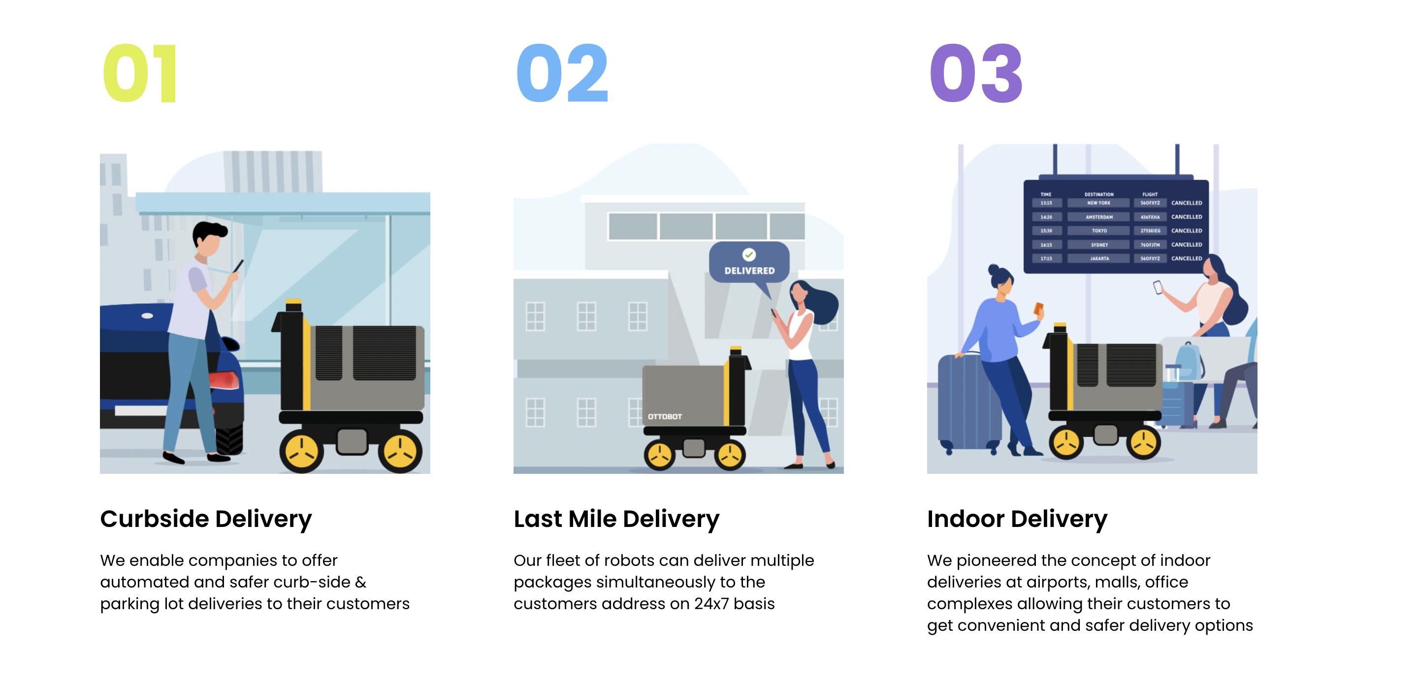 「Ottonomy.IO」由Ritukar Vijay、Pradyot Korupolu、Ashish Gupta和Hardik Sharma四人于2020年底联合创办,总部位于纽约。该公司开发了一款配有3D激光雷达和摄像头等传感器的机器人,并编写了软件和人工智能算法来支持自动化配送。该公司在美国和印度雇佣了25名员工。