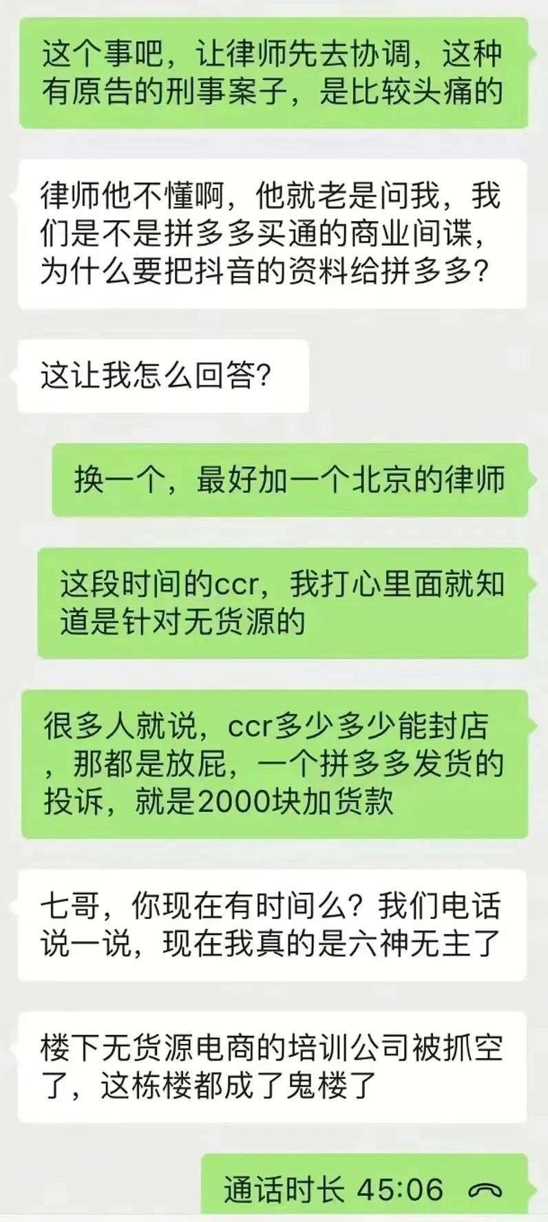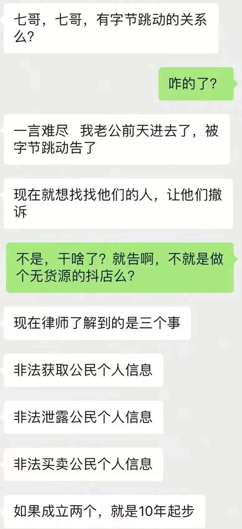 最近朋友圈一则聊天对话传得沸沸扬扬,大概意思就是因为搞无货源开店,涉嫌收集、交易公民信息,除了被抖音冻结账号、资金,还有可能面临被平台起诉坐牢的风险。