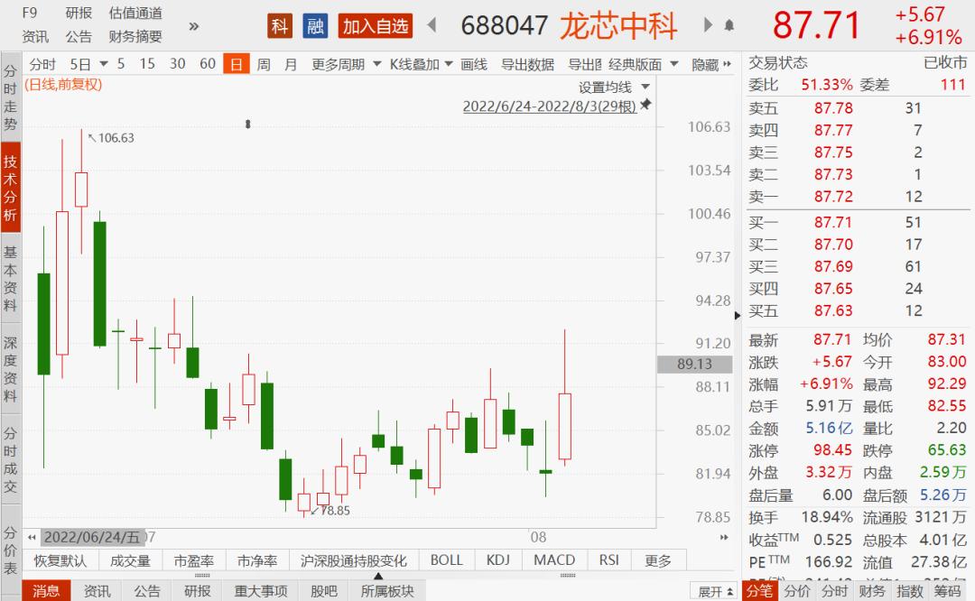值得一提的是,6月24日上市的龙芯中科作为“国产CPU第一股”,与海光信息同属于中科院系,其发行市值仅约300亿元,发行市盈率约140倍,龙芯中科上市前三日表现还不错,而后一度跌破发行价,最新市值约350亿元。