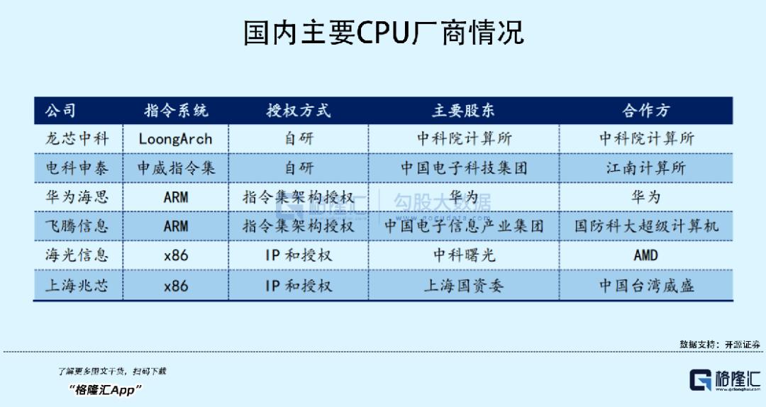 按指令集分类,目前国内主要的CPU厂商分为三类: