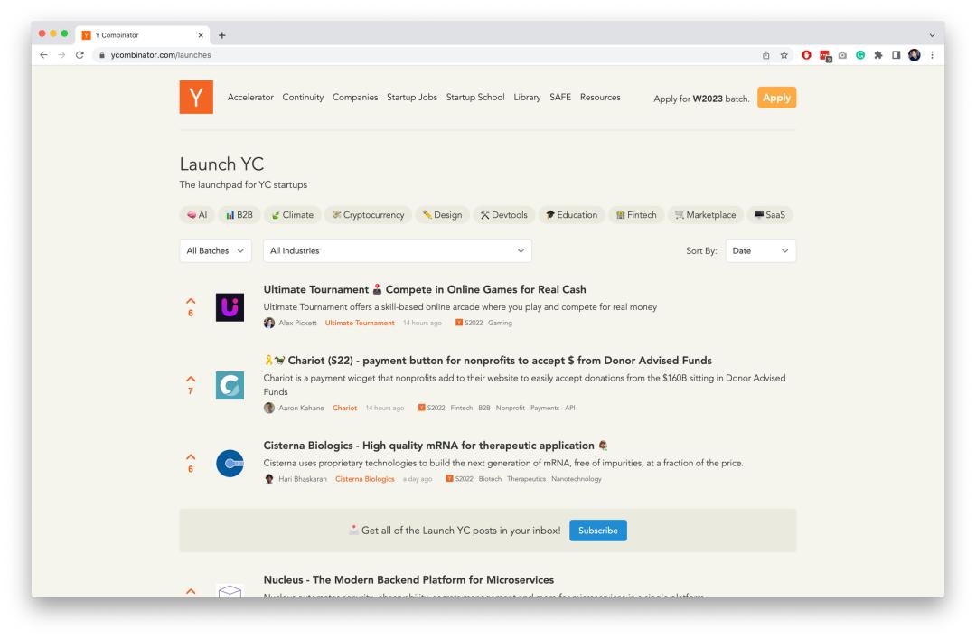 Y Combinator在今年6月推出了Launch YC,用户可以按行业、批次和推出时间对加速器内的初创产业进行检索,邀请用户对新产品进行投票,帮助初创公司攀登排行榜以此有更多机会“刷脸”来展示自己的产品演示和介绍创始团队,有那么点初创公司黄页大全的味道。