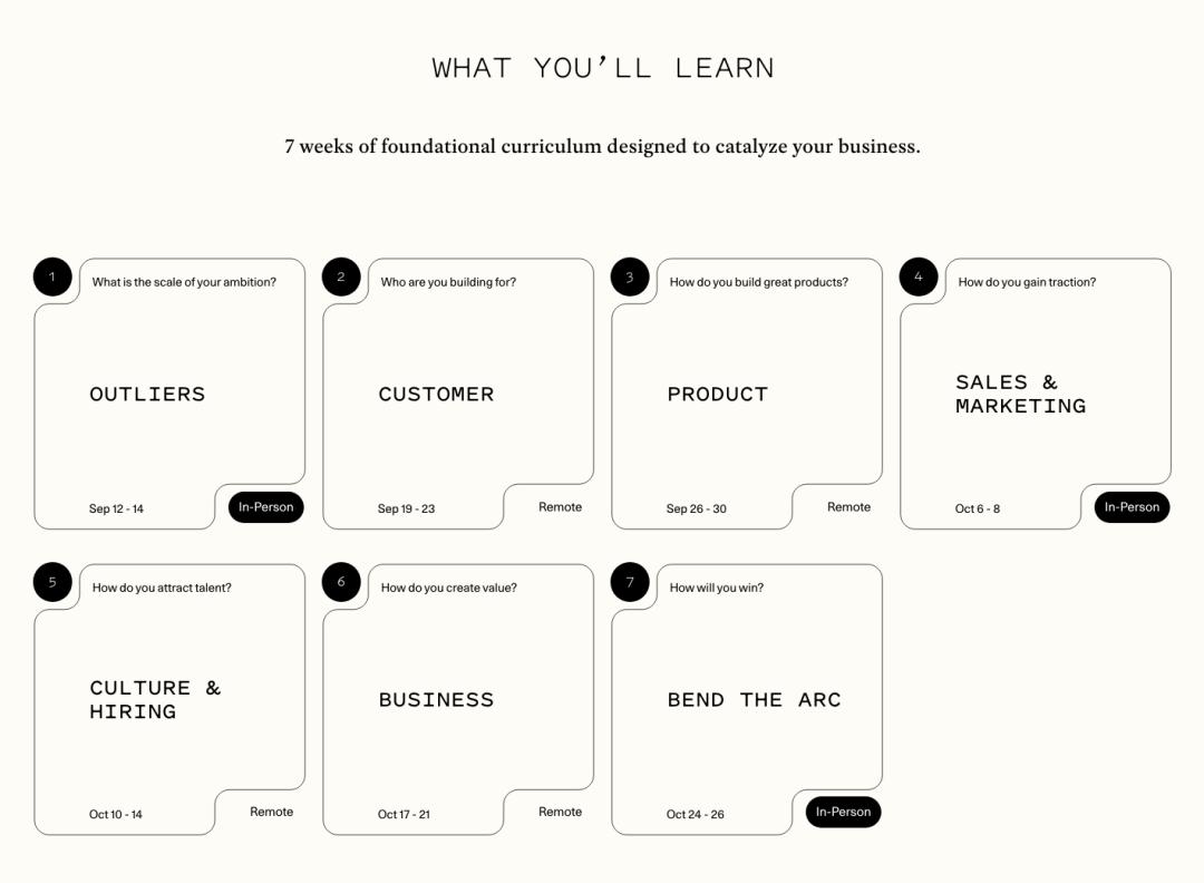 今年Sequoia宣布推出Arc,定位不是加速器也不是孵化器,而是自称为“催化剂”,致力于为15个初创企业提供八周左右的培训,培训内容包括公司结构、企业文化、产品和营销等等,甚至还有会以真人模式授课的“制胜秘籍”课程,这些企业同时还会获得100万美元的启动基金。