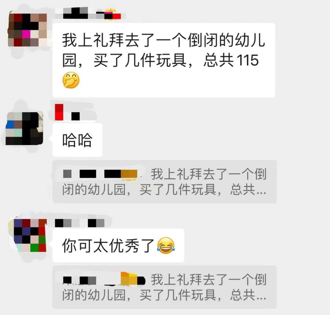 “前不久,群里有位宝妈分享了一个消息,说有一个幼儿园倒闭了,正在便宜出售玩具,她已经去薅了羊毛,觉得很划算。”朱朱回忆道,原价上百元、九成新的正版玩具,如今只要十几元一个,群里的妈妈们都狠狠地心动了,当即决定哪怕是战高温也要去淘一把。