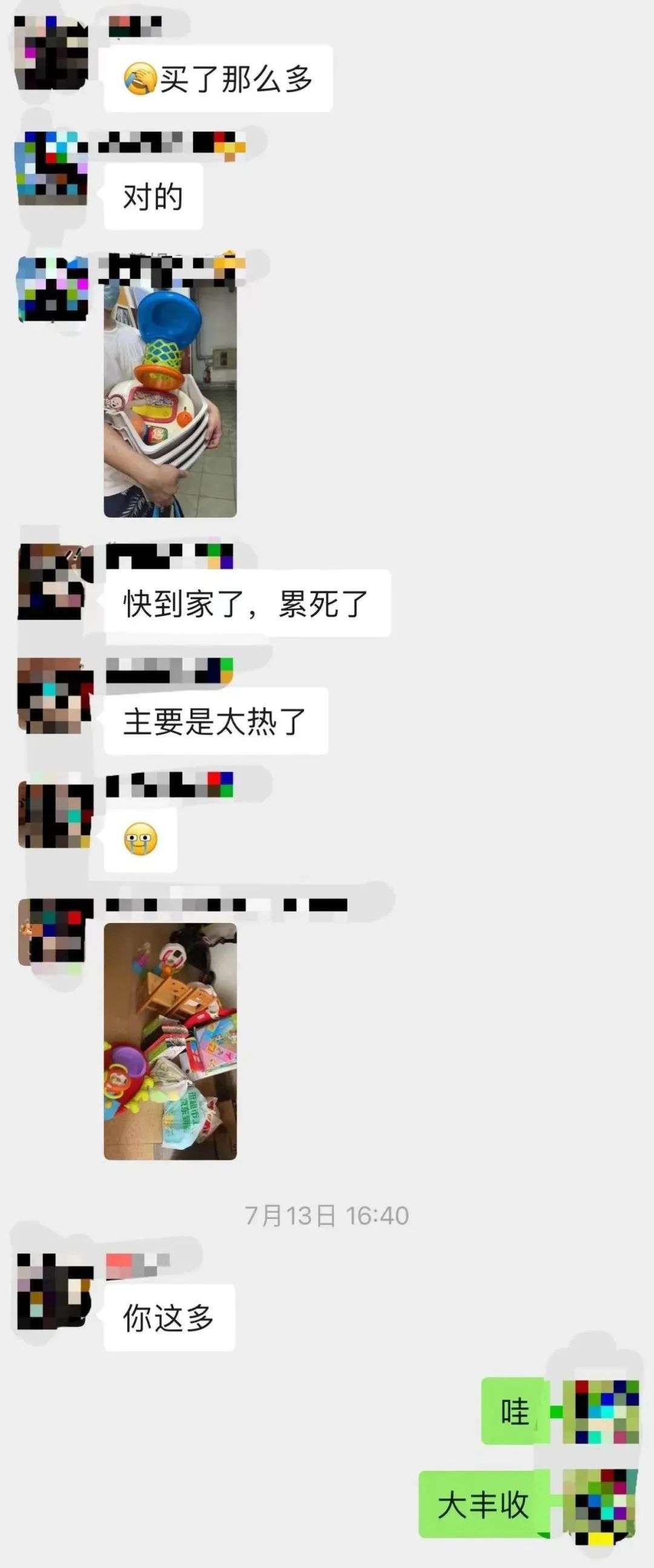 于是,顶着上海体感温度至少42摄氏度的高温天,群里6位宝妈相约来到了那家门庭萧瑟的幼儿园。“这些宝妈中有好多仍在产假中,身体还未完全恢复,天又这么热,还没开始行动就已经出了一头的汗,但这丝毫没有影响她们淘货的热情。”