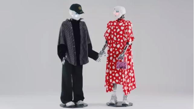 巴黎世家的七夕创意走的是未来主义风,在其发布的短视频和大片里,主角是英国 Engineered Arts 公司出品的机器人,这些拎着品牌包的机器人在影片中不仅彼此互动、表达爱意,还随着歌曲翩翩起舞。值得一提的是,短视频的背景音乐是邓丽君的《甜蜜蜜》。
