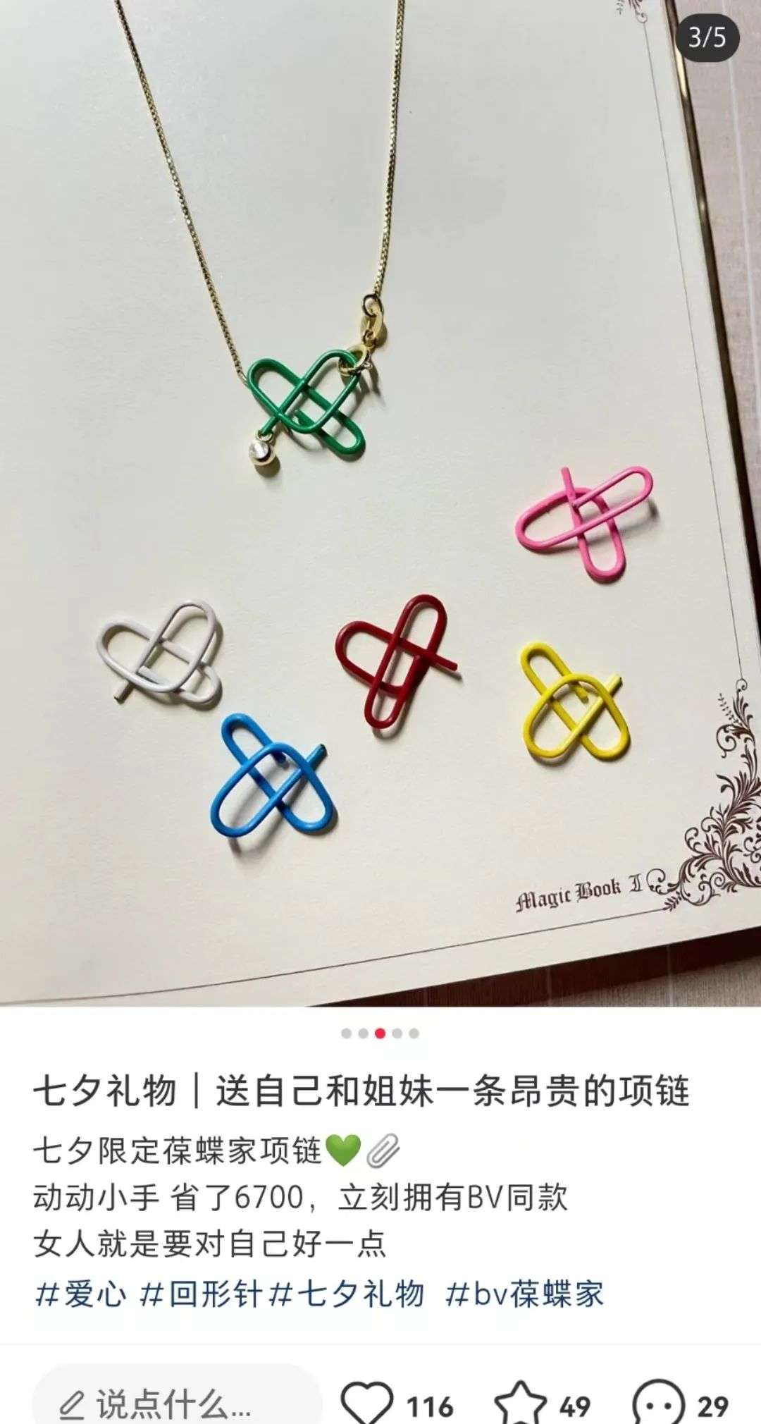 还有网友发文称,“谁家还没几个回形针,今天随手一掰也就赚了1W多吧”“BV项链自由,一周七天不同色”。