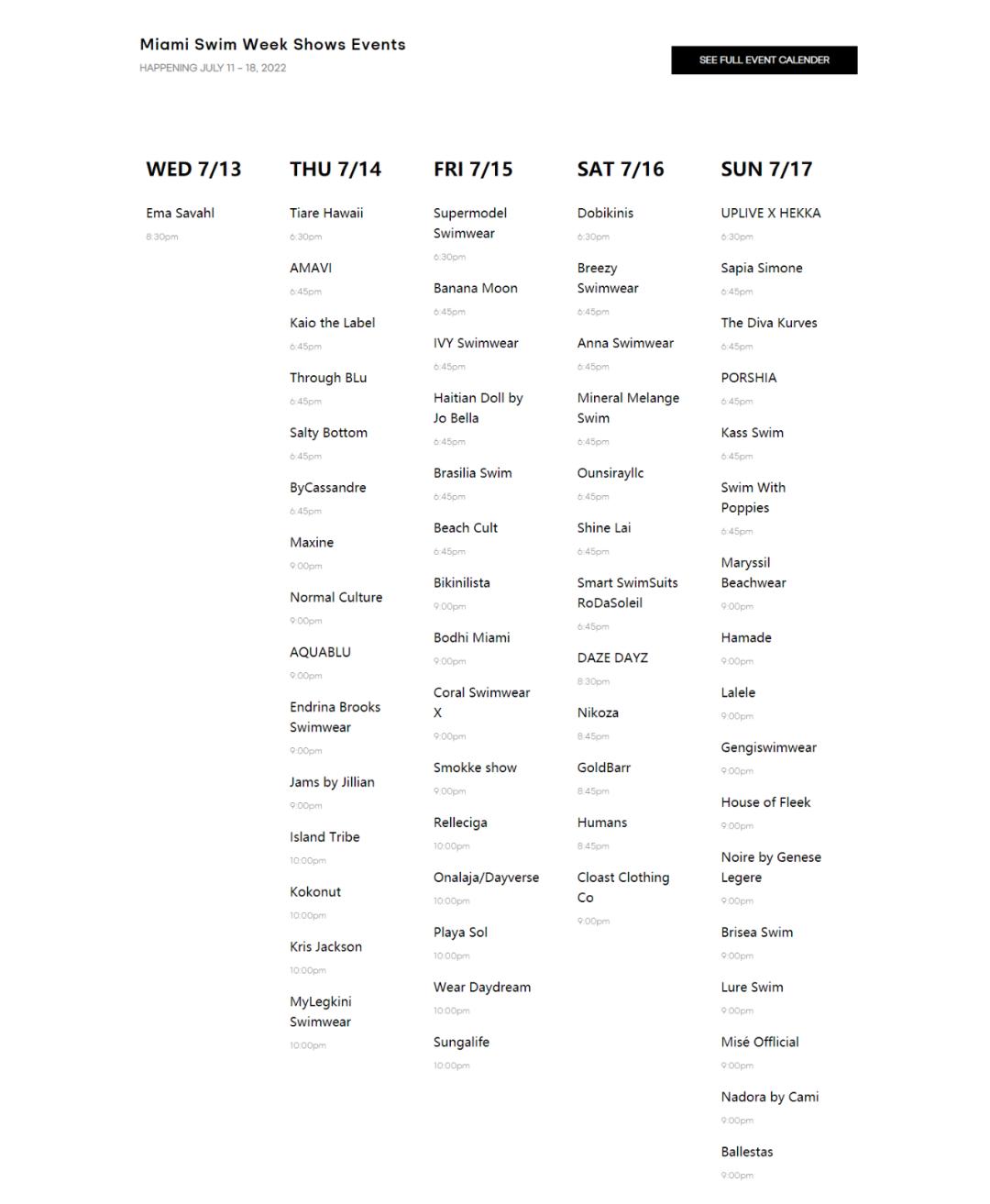 美国迈阿密泳装周2022年走秀名单,该泳装展是全球泳装趋势的晴雨表,出场品牌是兴城泳装设计的重要参考对象。