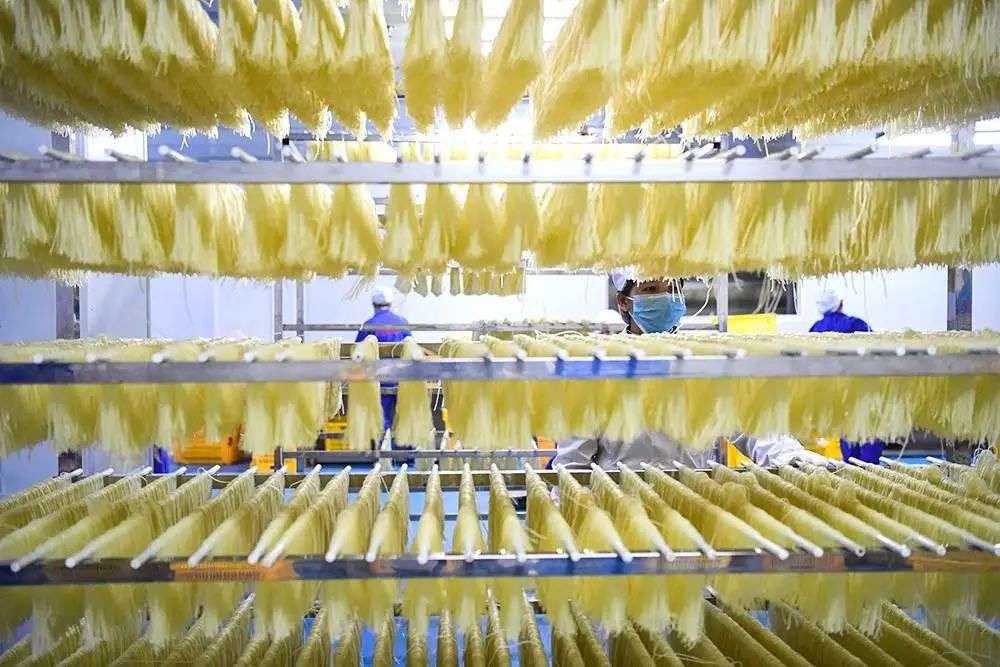 在螺蛳粉的带动下,柳州的米粉加工、甜竹笋种植、豆角种植、螺蛳养殖也纷纷发展起来,整条产业链都运转得风生水起。通过大力发展原材料基地,柳州全市螺蛳养殖面积已达4.8万亩、大米基地2万亩、竹笋基地8400多亩、木耳基地180万平方米……