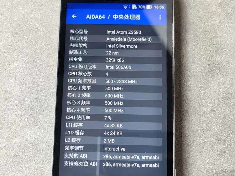 从技术参数上来说,Atom Z3580在它刚发布时还是挺先进的。其中在CPU方面,它配备了22nm的四核心Moorefield架构,已经是支持乱序执行的新一代设计,并且CPU主频高达2.33GHz,在当时的整个业界都算是最高水准。