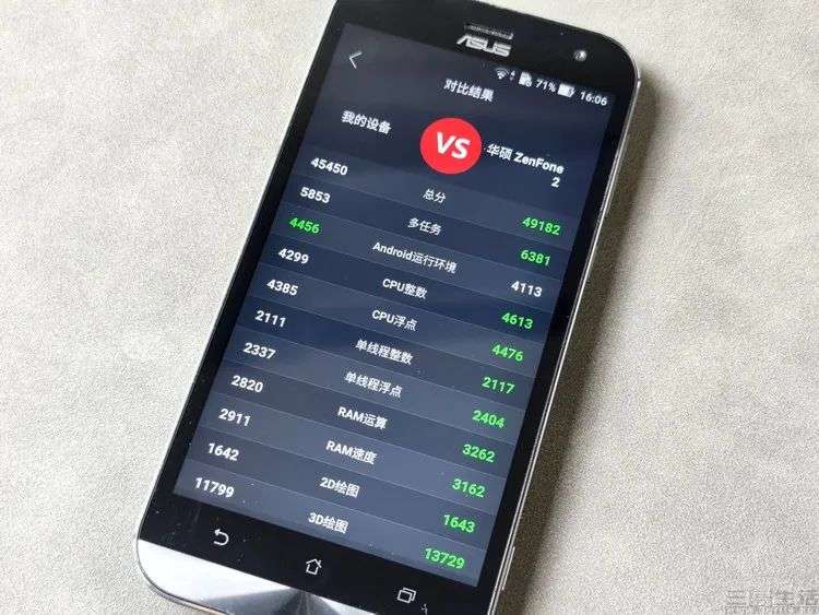 为什么我们这么说?一方面,我们手头这台日版Zenfone Zoom是有官方Android 6.0系统升级的(出厂为Android 5.1)。但升级了系统后我们发现,新版系统的优化水平很可能反而出现了倒退。因为在安兔兔V5、GeekBench v4等原生兼容x86的APP中,新版系统下Z3580的成绩都反而还不如老系统。