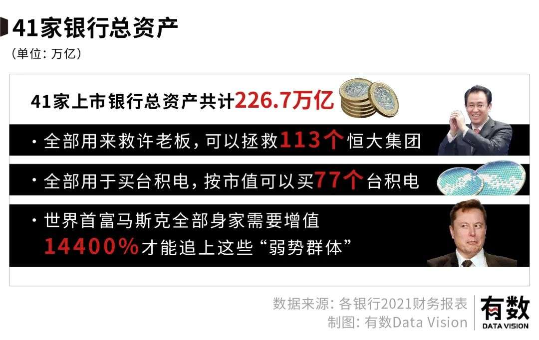 截止2021年年底,中国共有41家A股上市银行,这些银行总资产达到226.7万亿,无论从什么尺度衡量,这笔钱都可以为所欲为。