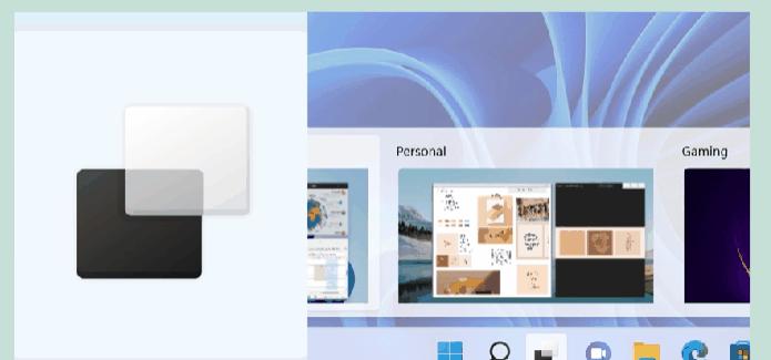 然后是 Win11 的桌面组建功能,这玩意能够帮大家在电脑上创建几个不同功能的桌面,比如一个专门用来工作;一个用来玩耍~