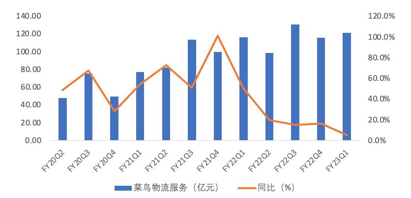 图8:阿里巴巴菜鸟业务收入;来源:Wind,36氪整理