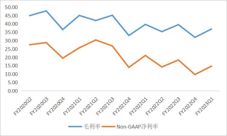 图3:阿里巴巴毛利率、Non-GAAP净利率;来源:Wind,36氪