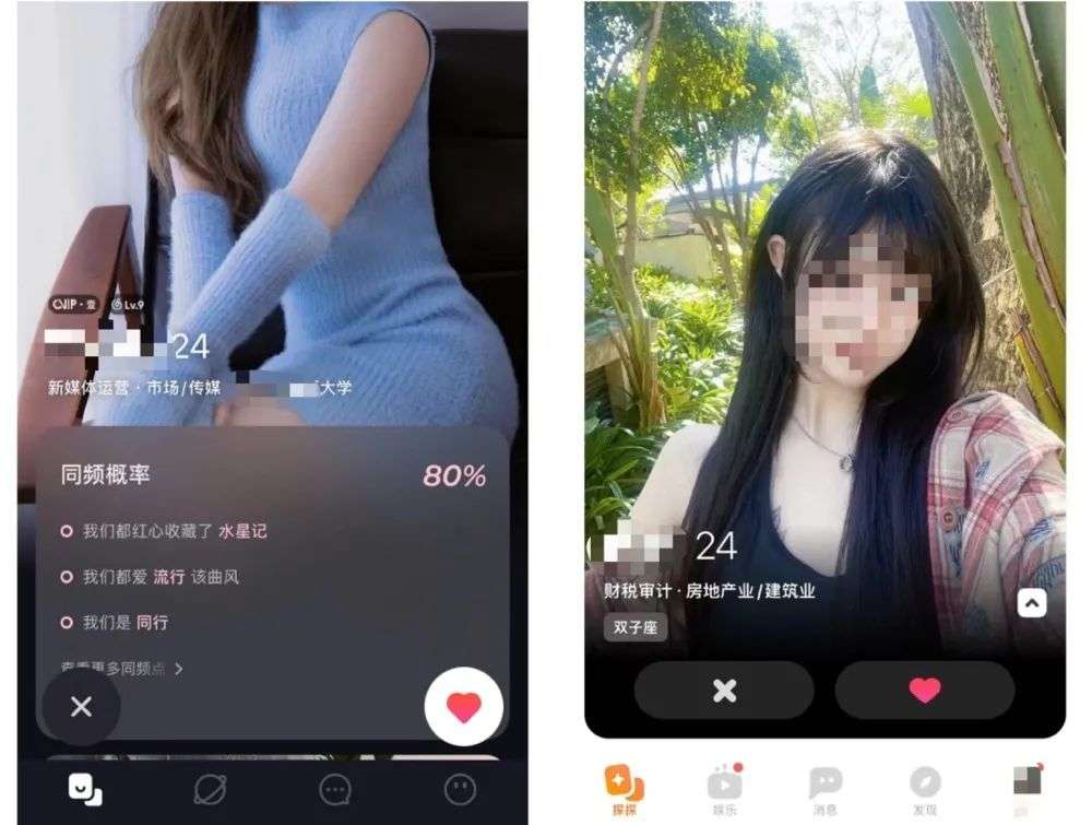刷脸社交,左滑Pass,右滑喜欢,主要代表为探探