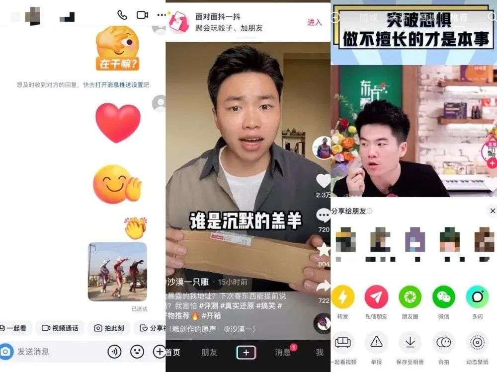 除了基础的私信、同城、聊天室功能,抖音在近两年,相继推出独立社交产品多闪与飞聊,平台内推出视频连线、视频通话、朋友日常、一起看、一起唱等熟人社交功能,在陌生人社交方面,平台内测了抖一抖、同城圈子、兴趣匹配等功能。这些功能却并未产生叠加效应,大多没有反响。无论是熟人社交还是陌生人社交,抖音都无法用海量的用户建立起牢固的社交关系网。