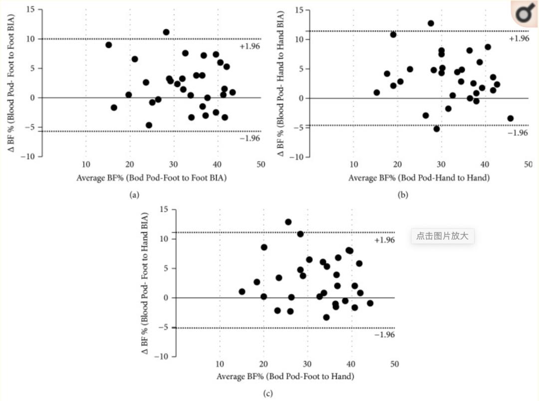 腰围和臀围数值相对更大的人群,采用生物电阻抗法测算体脂会更精准。2019年《美国运动医学杂志》招募了92名19-72岁的受试者,比对他们生物电阻抗法以及BOD POD气压测量法的体脂率差值。