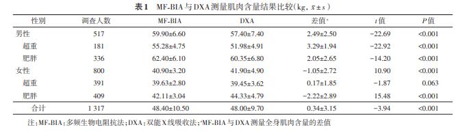 DXA测量和生物电阻抗阻测量对比 来源:《中华预防医学杂志》