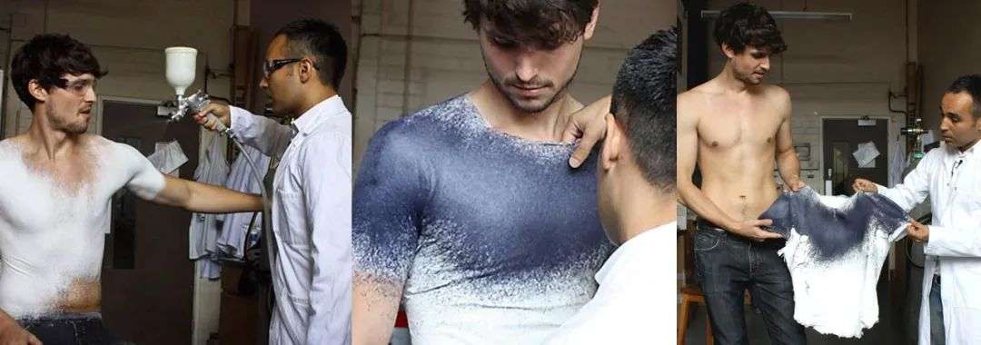 研究人员说,当你喷上一件短袖时,能直接把它当作正常衣服那样穿脱。不过更高级的是,就算这件短袖划破了,你可以用喷雾立刻补上!