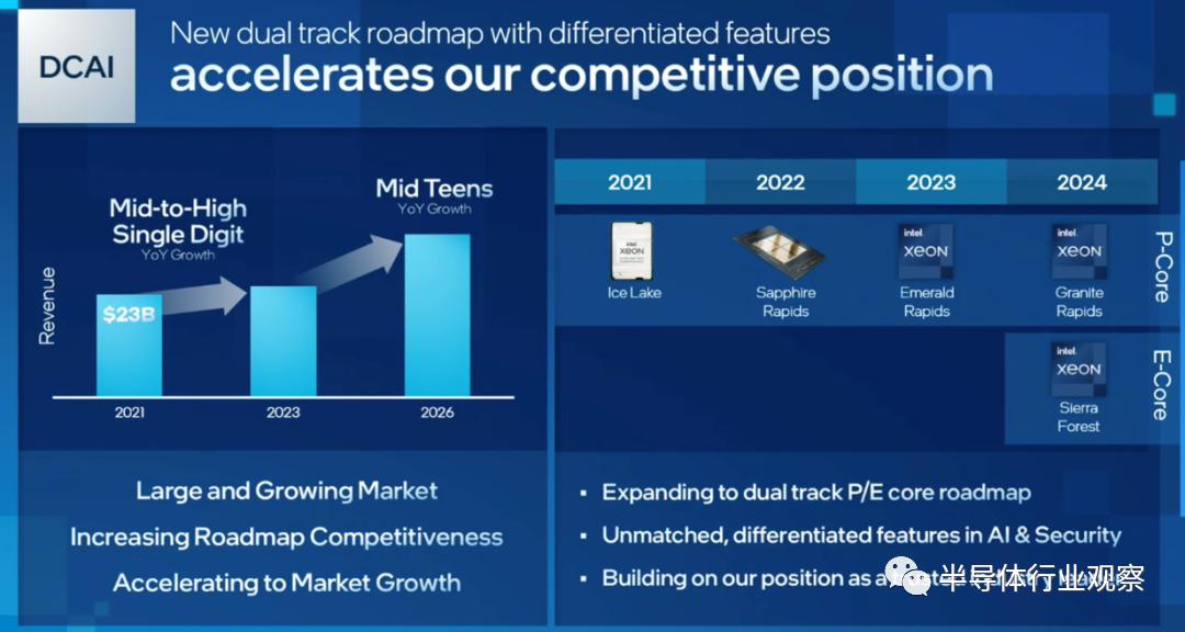 在DCAI领域,英特尔曾公布了2022-2024年间即将发布的下一代英特尔至强产品路线图。