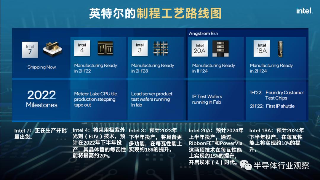 除了大刀阔斧地扩建晶圆厂,英特尔在先进制程领域也是胜券在握。