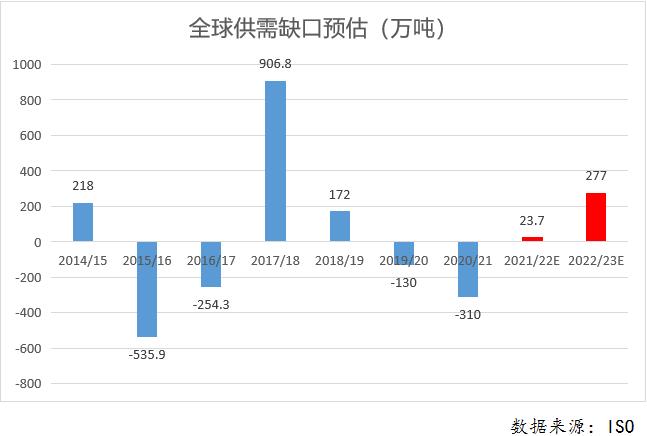 3.1 国际市场——21/22榨季全球食糖平衡由短缺向略微的盈余