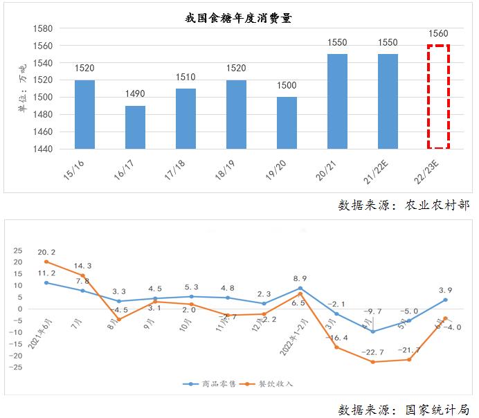 市场对于食糖消费信心的下降→糖价的上涨高度受限。等待下半年进入食糖消费传统旺季,市场信心有望伴随经济数据的好转同步改善,进而为糖价带来一定支撑。