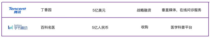 在这张表以外,去年百度领投互联网健康科普平台有来医生B轮融资,融资规模近2亿元。