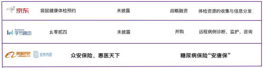 阿里健康:与众安保险、惠医天下合作,为糖尿病患者提供慢病保险产品“安唐保”,可以满足轻症、并发症、重疾各阶段病程的不同投保需求。