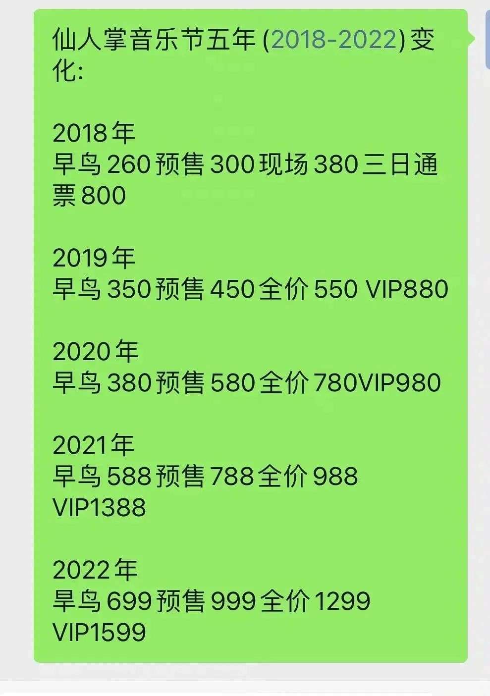 也正是从那时起,每年音乐节票价涨幅开始“离谱”了起来。