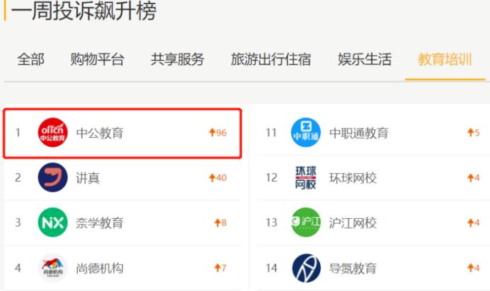 但事实上,在今年315之前,中公教育的投诉一度飙升到第一。
