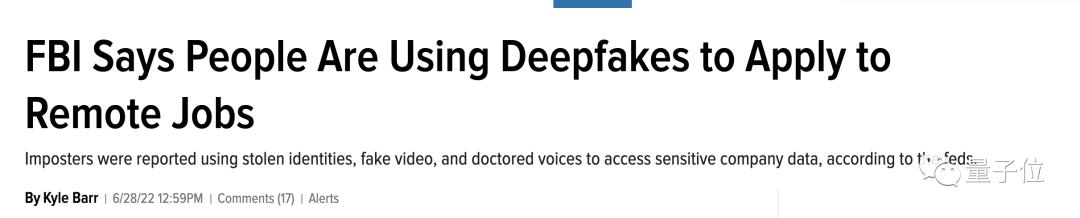 美国联邦调查局(FBI)曾致函其互联网犯罪投诉中心,称收到过多起投诉,有人利用窃取的信息和深度伪造的视频、语音申请远程技术工作。