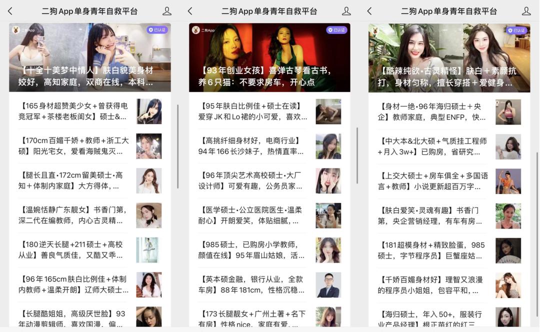 比如,源自鹅厂的高学历实名制交友软件二狗,用户注册完账号以后,要经过四项认证才能解锁最大权限的匹配功能。号称“高学历有志青年社交平台”的青藤之恋,也是给资料完成度更高的嘉宾提供优先推荐。